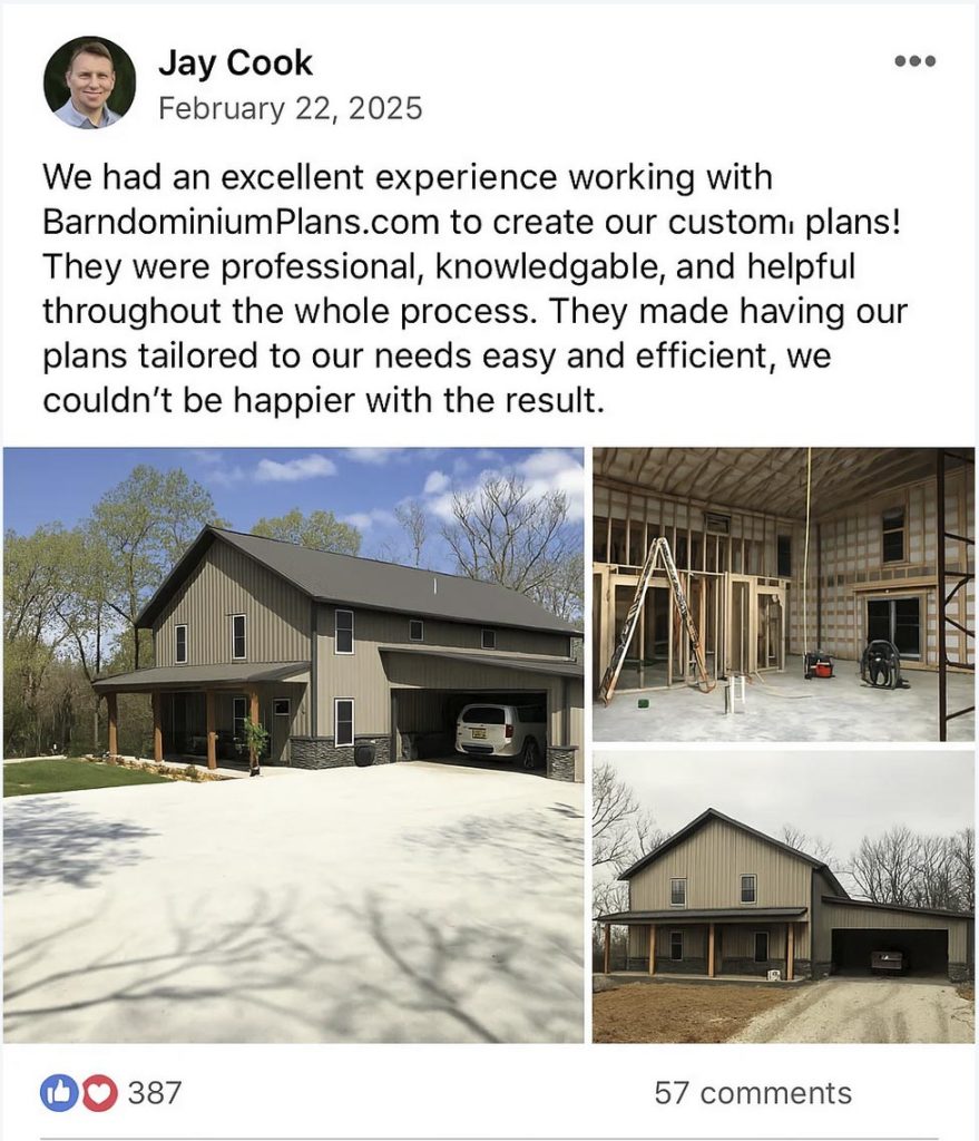 As construction professionals that specialize in barndominium construction we realized early on that we needed to partner with a professional architectural firm to help our customers get the best plans & pricing.